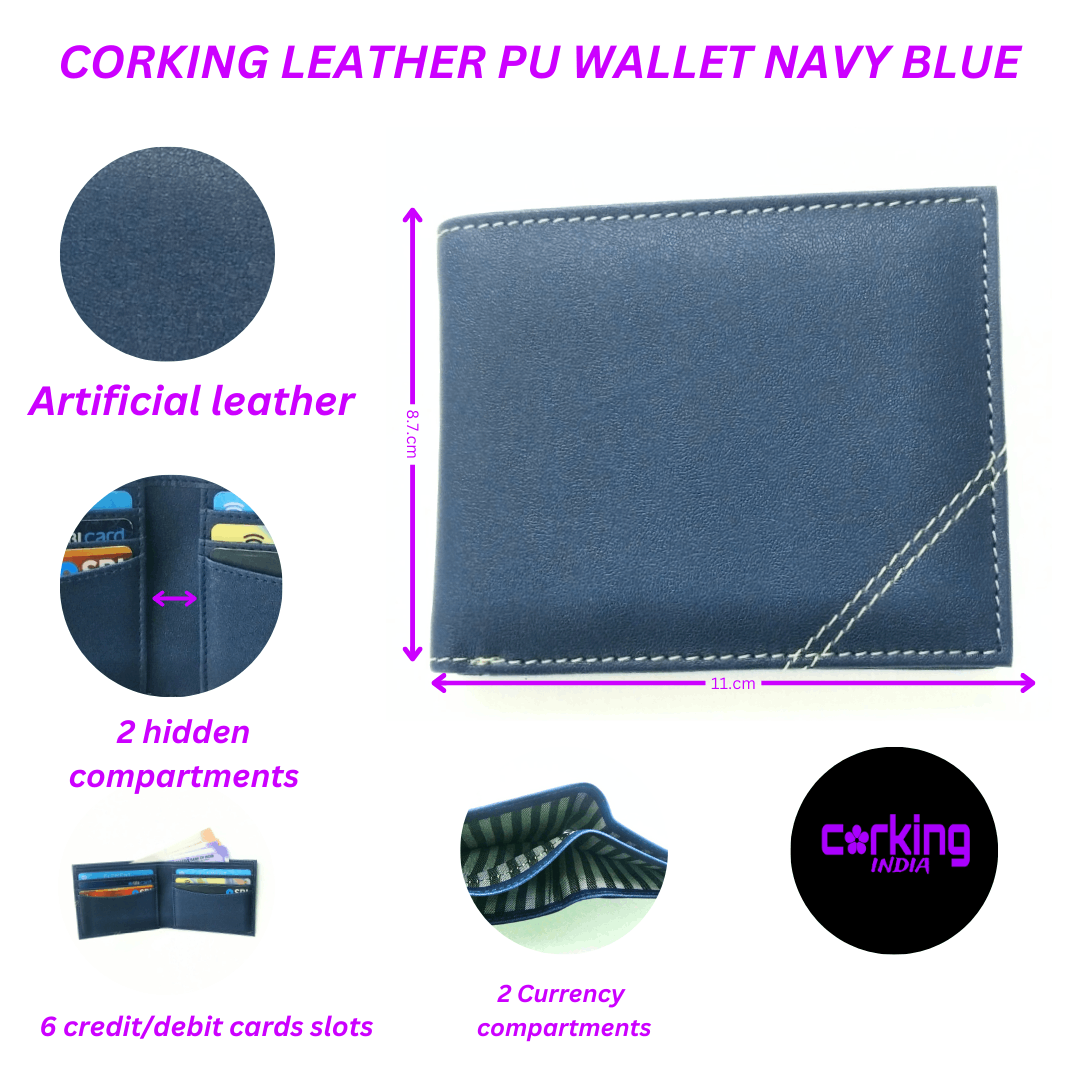 corking artificial leather wallet More than just a wallet, it’s a piece of Indian artistry you carry with you. Imagine the skilled hands in India that meticulously crafted this refined wallet. Made from premium artificial leather that whispers of luxury and promises enduring resilience, this is a testament to handcrafted excellence. Inside, discover a haven for your essentials: six card slots stand ready to organize your finances, two generous currency compartments embrace your cash, and two discreet hidden pockets guard your most precious documents. Sized at a pocket-friendly 11 cm x 8.7 cm, this wallet isn’t just functional; it’s a tangible connection to artistry and a subtle statement of discerning style. Embrace the heritage, embrace the elegance.