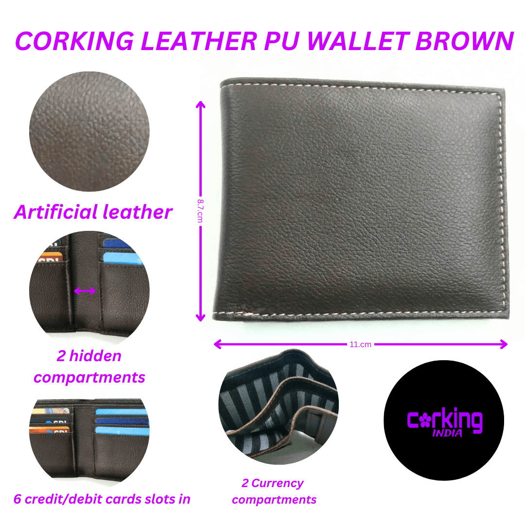 corking artificial leather wallet More than just a wallet, it’s a piece of Indian artistry you carry with you. Imagine the skilled hands in India that meticulously crafted this refined wallet. Made from premium artificial leather that whispers of luxury and promises enduring resilience, this is a testament to handcrafted excellence. Inside, discover a haven for your essentials: six card slots stand ready to organize your finances, two generous currency compartments embrace your cash, and two discreet hidden pockets guard your most precious documents. Sized at a pocket-friendly 11 cm x 8.7 cm, this wallet isn’t just functional; it’s a tangible connection to artistry and a subtle statement of discerning style. Embrace the heritage, embrace the elegance.corking artificial leather wallet corking artificial leather wallet