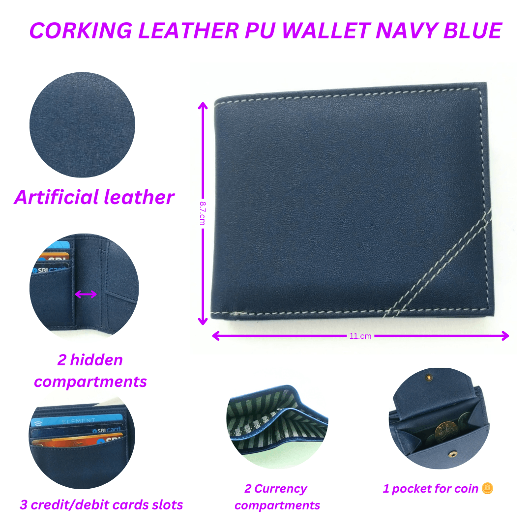 corking artificial leather wallet is handcrafted wallet is made from premium, supple artificial leather, offering a stylish and durable option for your everyday essentials. More than just a place to keep your cash, it’s a subtle statement of your personal style. The carefully considered interior features two full-length compartments for notes, three dedicated slots for credit or debit cards, and two discreet hidden pockets ideal for receipts, extra cards, or small valuables. A separate coin pocket keeps loose change organised and prevents it from cluttering the wallet.Its slim profile, measuring just (11.cm by 8.7cm) ensures a comfortable fit in any pocket or bag without adding bulk. The durable construction and high-quality materials guarantee long-lasting use, making this wallet a worthwhile investment. Whether you’re treating yourself or looking for a thoughtful gift, this handcrafted artificial leather wallet combines style, practicality and excellent value.